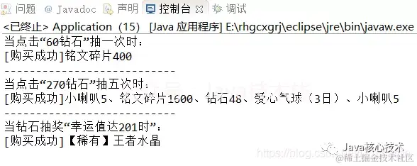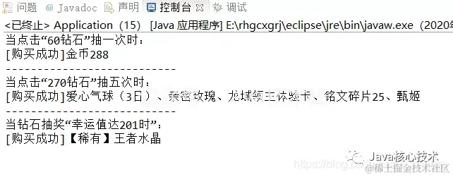 System.out.println("当点击“60钻石”抽一次时:");