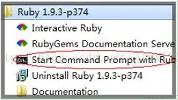 安装完ruby之后,在开始菜单中,找到刚才我们安装的ruby,打开Start Command Prompt with Ruby