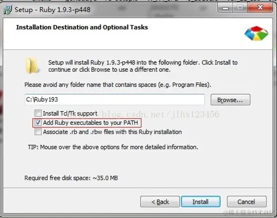 在安装的时候,请勾选Add Ruby executables to your PATH这个选项,添加环境变量,不然以后使用编译软件的时候会提示找不到ruby环境