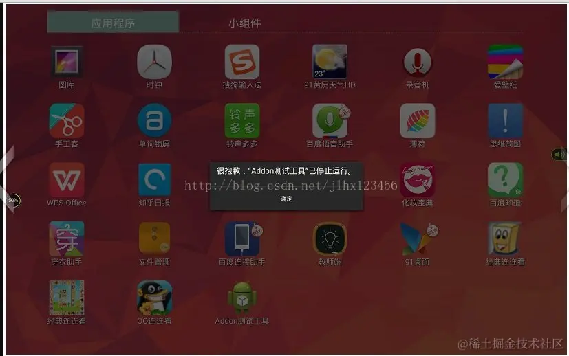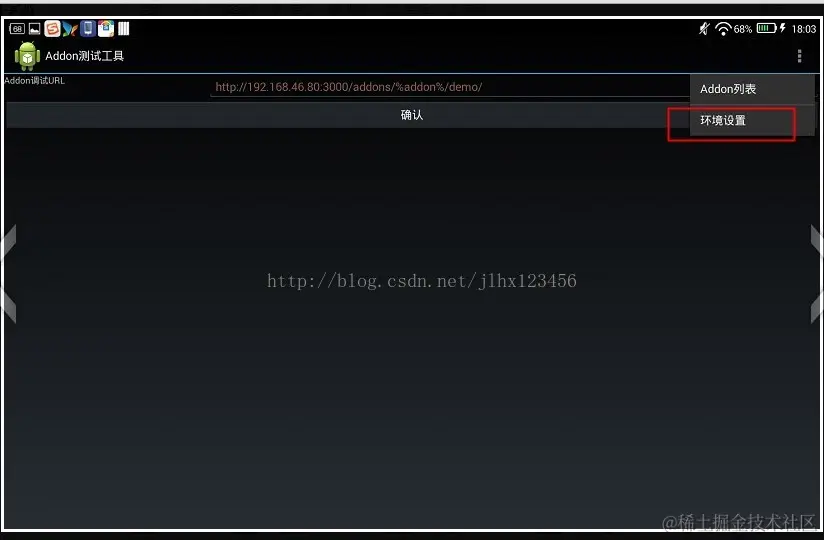 bug标题:【Addon测试工具】环境配置页面,再次点击右上角的环境配置,导致APP 奔溃,详见截图和DDMS的log
