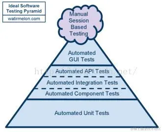 为什么要画成一个金字塔形,则不是长方形 或倒三角形呢? 这是为了表示不同阶段所投入自动化测试的比例。如果一个产品从没有做单元测试与接口测试,只做UI层的自动化测试是不科学的,从而很难从本质上保证产品的质量。如果你妄图实现全面的UI层的自动化测试,那更是一个劳民伤财的举动,投入了大量人力时间,最终获得的收益可能会远远低于所支付的成本。因为越往上层,其维护成本越高。尤其是UI层的元素会时常的发生改变。所以,我们应该把更多的自动化测试放在单元测试与接口测试阶段进行。\