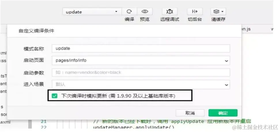 - 如果你想现在就使用最新版本则需要调用wx.getUpdateManager API进行处理。