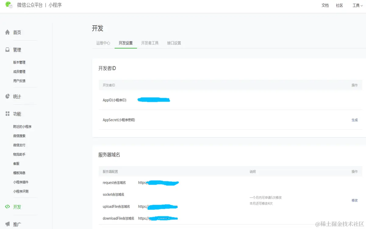 - 发布前需申请外网域名,并在微信web开发者工具里找到项目,设置好服务器的域名。