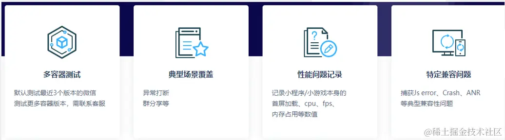 1.兼容性测试: 测试地址: wetest.qq.com/product/min…