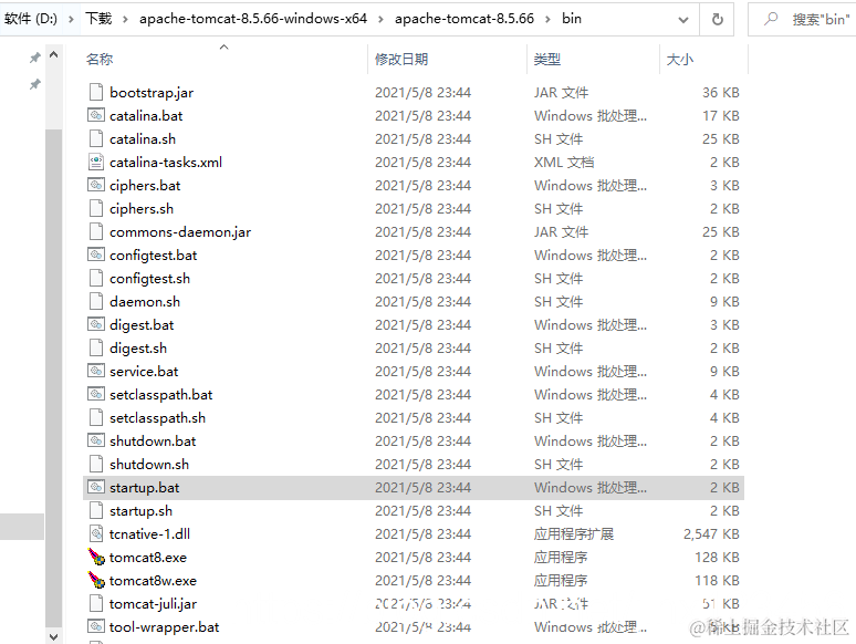 安装或者解压目录下bin文件下点击tomcatX.exe或者点击startup.bat启动tomcat