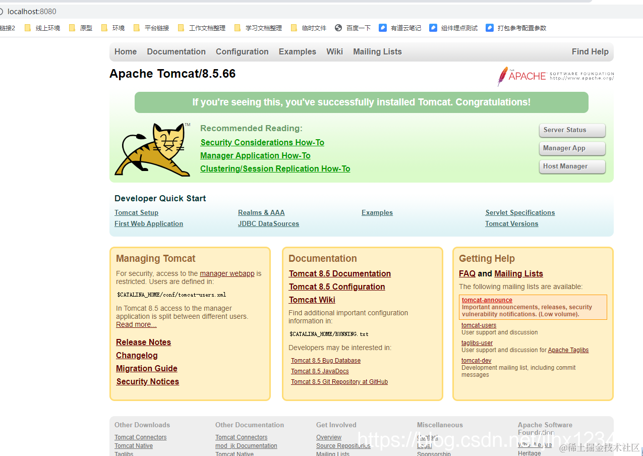 打开浏览器,在地址栏输入http://localhost:8080 或 http://127.0.0.1:8080进行打开tomcat的主页。