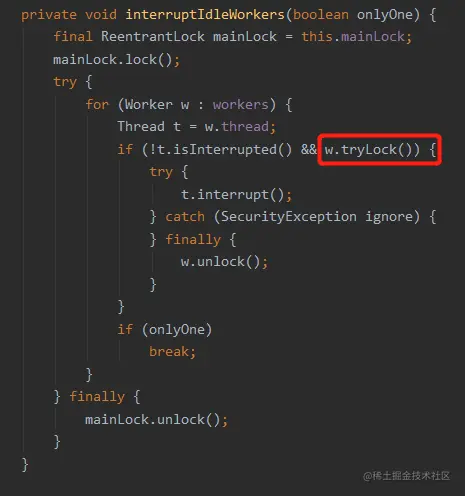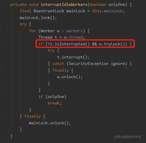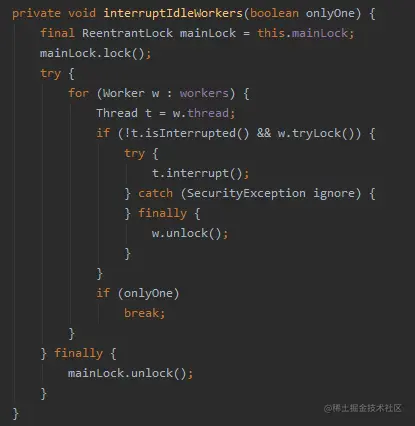 interruptIdleWorkers,这玩意根本就不是一个单词,这是线程池里面的一个方法: