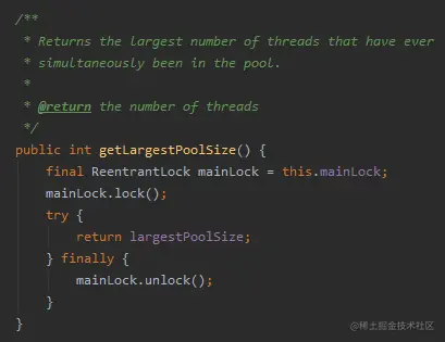 你再看一下前面 getLargestPoolSize 方法获取值的地方。