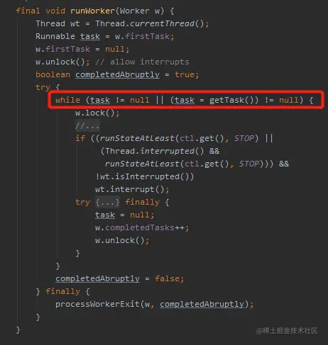 java.util.concurrent.ThreadPoolExecutor#runWorker