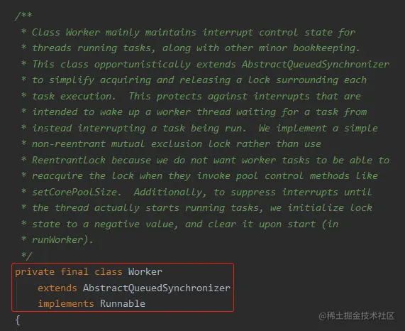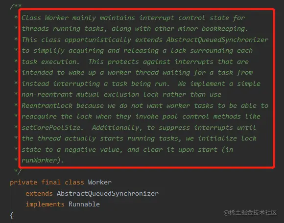 这里解释了为什么老爷子不用 ReentrantLock 而是选择了自己搞一个 worker 类。