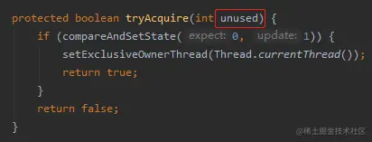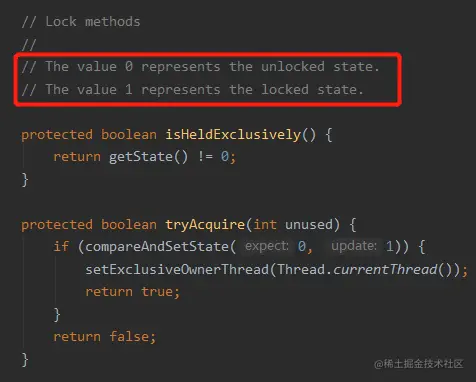 核心逻辑就是一个 CAS 操作,把某个状态从 0 更新为 1,如果成功了,就是 tryLock 成功。