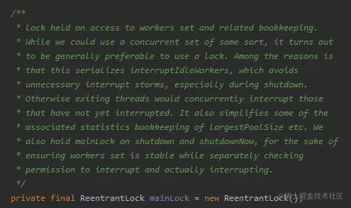 除了前面说的 mainLock 外,线程池里面其实还有一把经常被大家忽略的锁。
