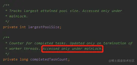 其实我个人觉得这个地方用 volatile 修饰一下 largestPoolSize 变量,就可以省去 mainLock 的上锁操作。
