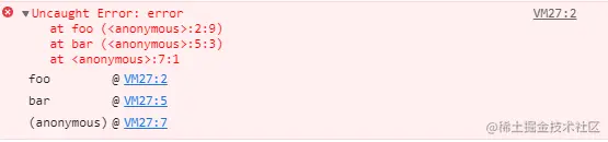 从上图可以看出,报错在 foo 函数,foo 函数又是在 bar 函数中调用的。