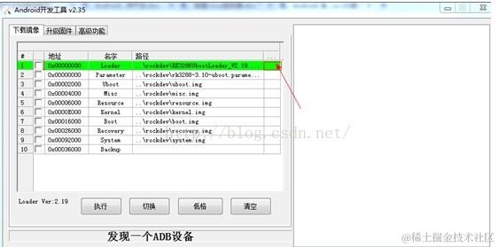 开启板子,直到出现“发现MUSKROM设备”字样,点击“执行”;