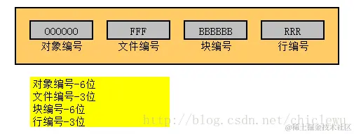 - 扩展rowid由四部分组成:OOOOOOOFFFBBBBBBRRR: