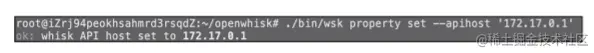OpenWhisk 提供了一个统一的命令行接口 wsk。生成的 wsk 在 openwhisk/bin 下。其有两个属性需要配置。