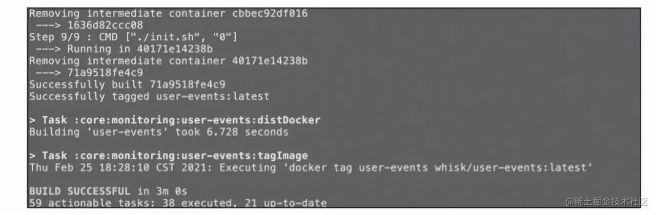 接下来使用 CouchDB 部署 OpenWhisk,确保本地已经有了 db_local.ini。在 openwhisk/ 目录下执行部署命令: