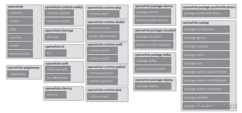OpenWhisk 是由许多组件构建的,这些组件让 OpenWhisk 成为一款优秀的开源 FaaS 平台。