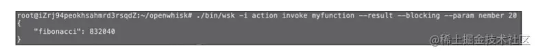 ./bin/wsk -i action invoke myfunction --result --blocking --param nember 20