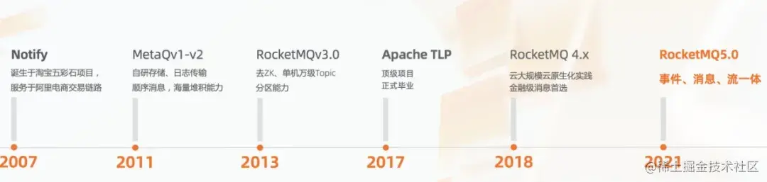 RocketMQ 诞生于阿里巴巴内部电商系统,发展至今日,其核心架构经历了多次关键演进: