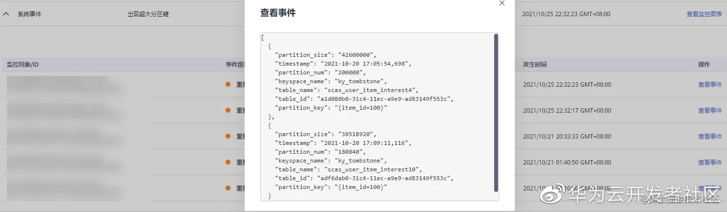 GaussDB(forCassandra) 支持了大key的检测与告警。在CES界面,可以配置实例的大key告警。当发生大key事件时,会第一时间通知。及时整改,可避免业务波动。