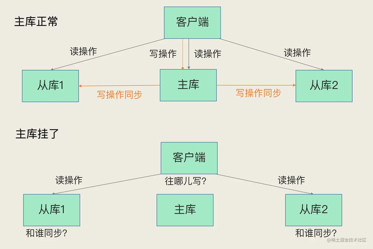 所以为了保证服务的高可用,当主库挂掉后,选举一个从库作为新的主库