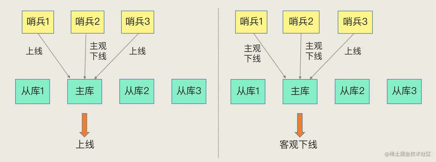 只有大多数的哨兵实例,都判断主库已经“主观下线”了,主库才会被标记为“客观下线”\