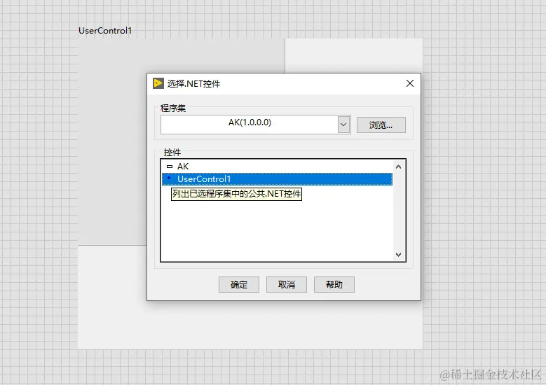 C#编写自定义控件,LabVIEW调用 LcVong 2021-11-01 441 阅读1分钟 1.先新建控件项目,如下图: 2.根据自己需求拖入控件,编写对应代码,再生成,生成文件为DLL。 3.调用当前控件,新建W窗体项目,将当前控件对应的dll拖入工具箱,如下图: 再调用。 4.同样可以被LabVIEW调用,在LabVIEW前面板容器里面拖入.NET容器,再选择对应的控件DLL,如下图: