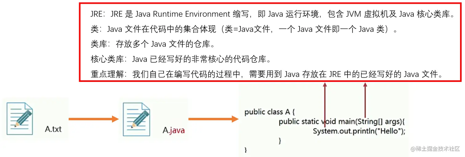 - 编写代码的过程中,需要使用 JRE 中 Java 已经写好的代码。
