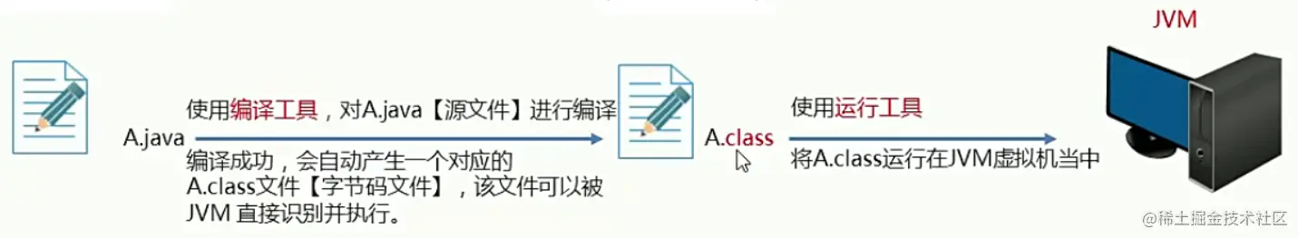 开发 Java 程序,需要三个步骤:编写代码,编译代码,运行代码。