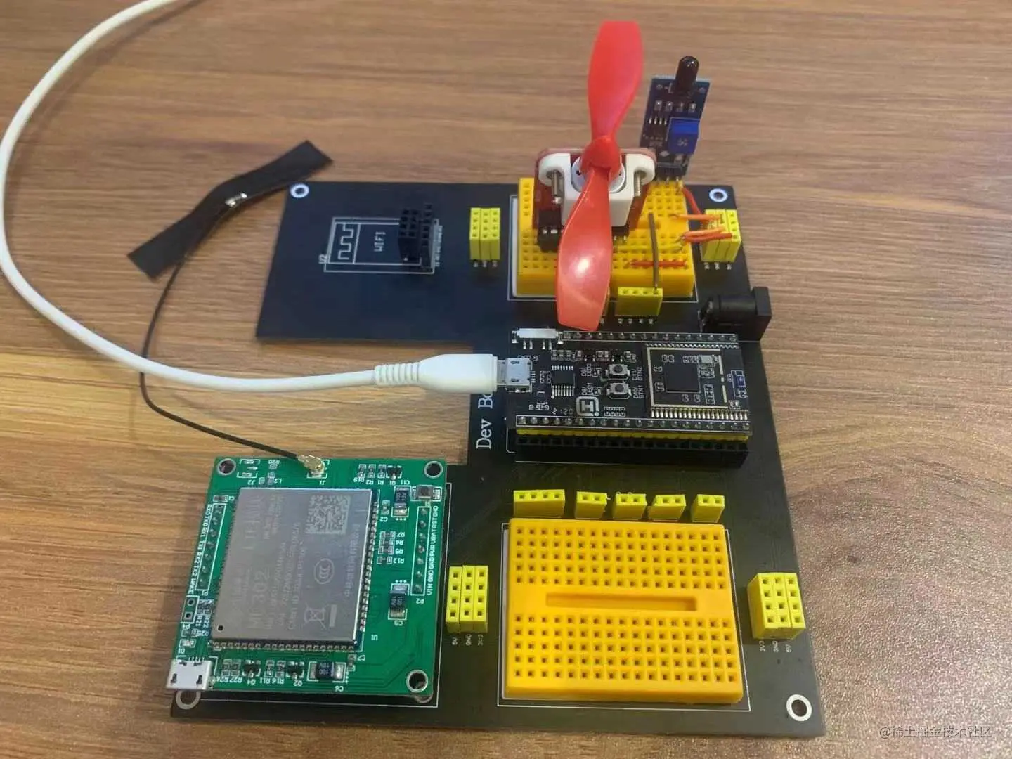 火焰监测及自动灭火装置,实现能够远程监控火情,并在当火情发生时本地自动开启灭火动作的设备,本设计采用的玩具风扇来灭火,但实际工程应用中应根据您的场景选择真正合适的灭火装置,以及更合适的火焰探测传感器。