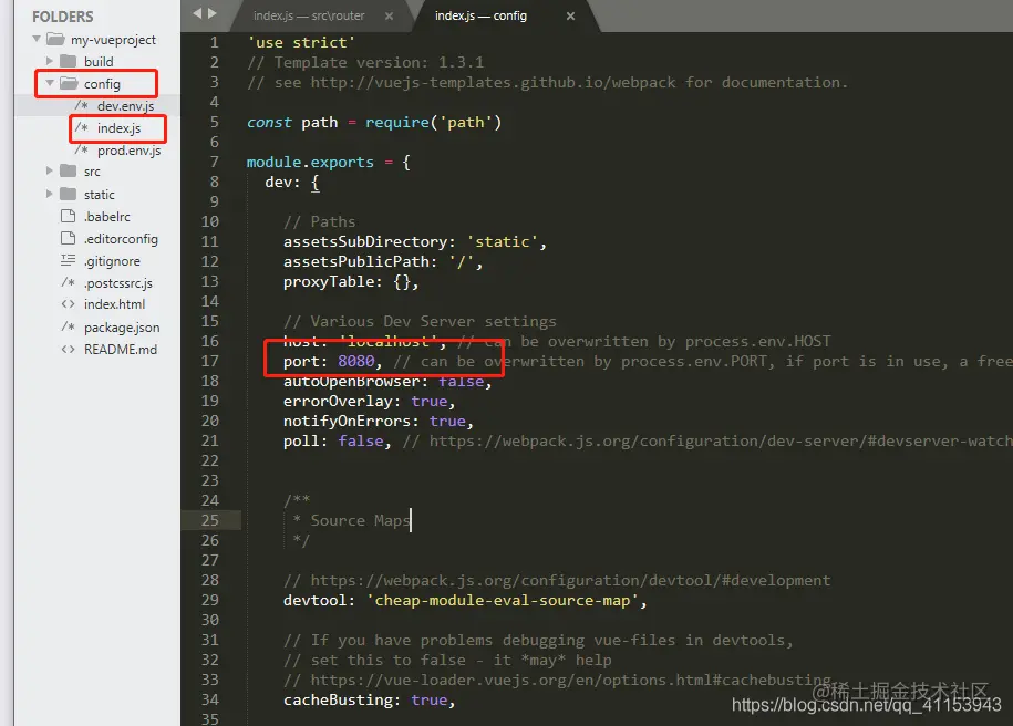 注意:如果出现8080端口被占用的情况,可以在config文件夹下的index文件内修改port端口号: