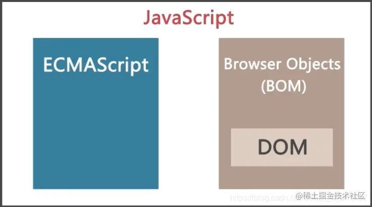 完整的JavaScript是由ECMAScript(语法)、Browser Objects(DOM、BOM)(特性)组成的。