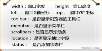 语法:window.open(pageURL,name,parameters)