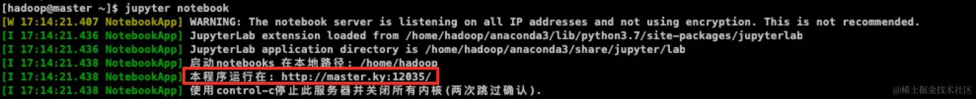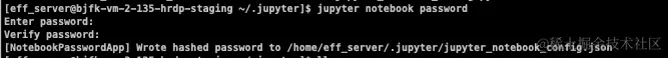 该命令会让你填写密码和确认密码,并且生成含有密码的hash的`jupyter_notebook_config.json`文件。