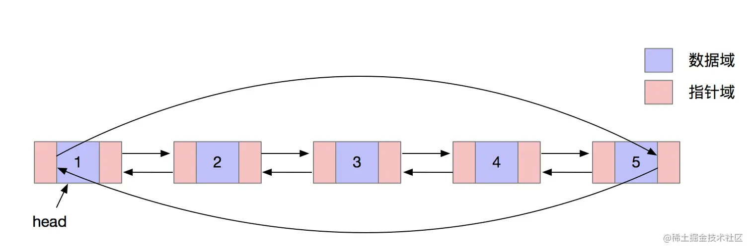 双向循环链表是指首尾相连的双向链表。