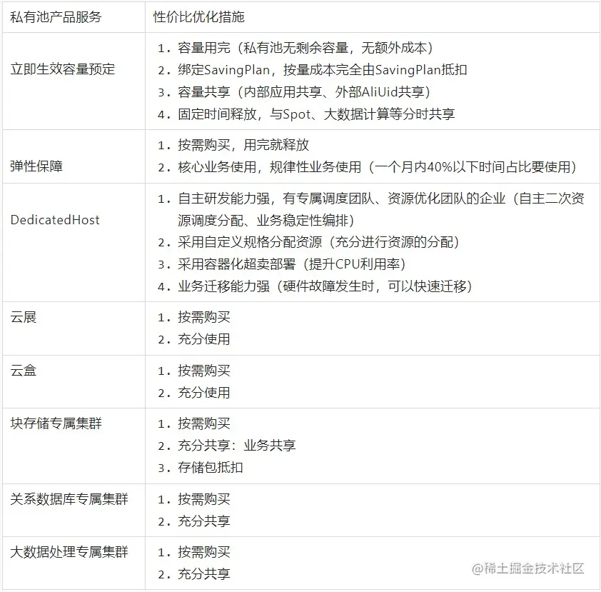 表2-私有池性价比优化