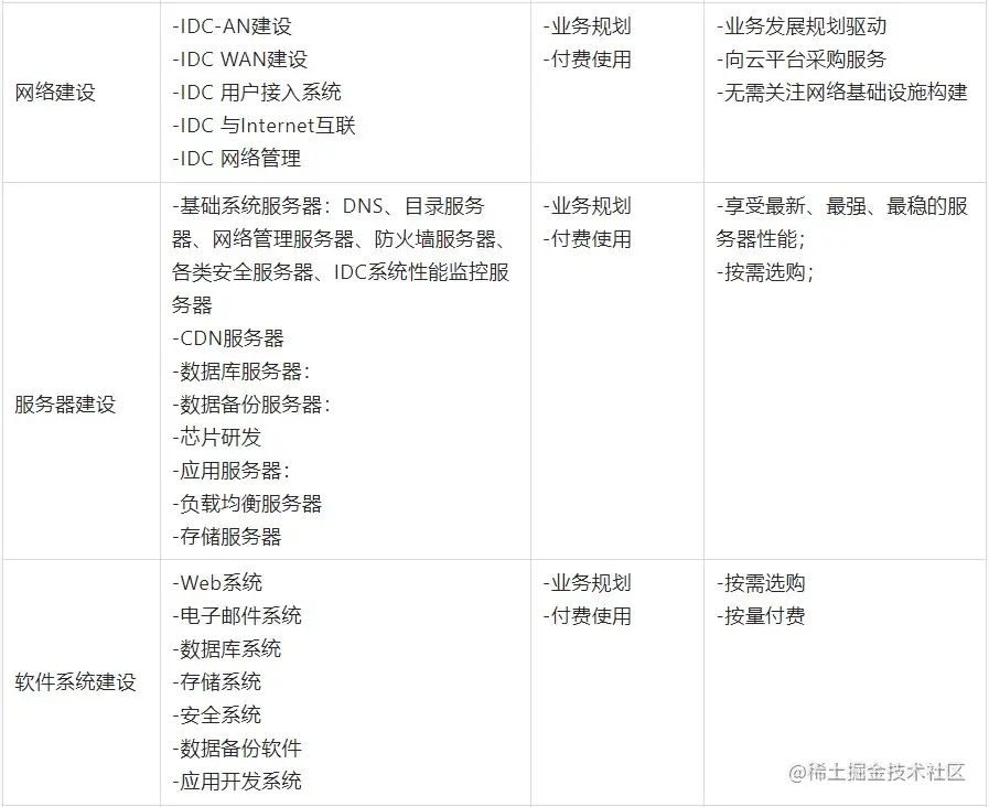 表1-自建IDC和OnCloud对比
