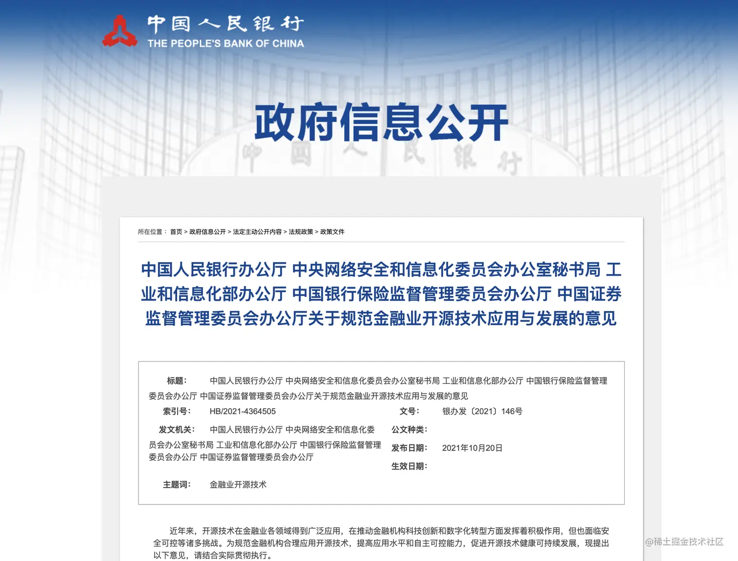 编者记:近日,随着央行等五部门发布的一篇《关于规范金融业开源技术应用与发展的意见》,就规范金融机构合理应用开源技术,提高应用水平和自主可控能力,促进开源技术健康可持续发展进行工作布局。