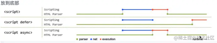 所以一般都把JS放在页面的底部「不想让其阻碍GUI渲染DOM树」