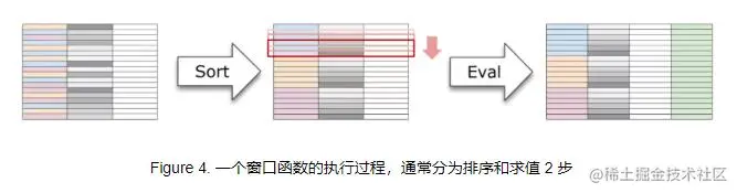 窗口函数经典的执行方式分为排序和函数求值这 2 步。