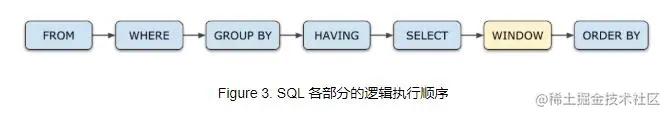 另一方面,从逻辑语义上说,SELECT 语句的各个部分可以看作是按以下顺序“执行”的: