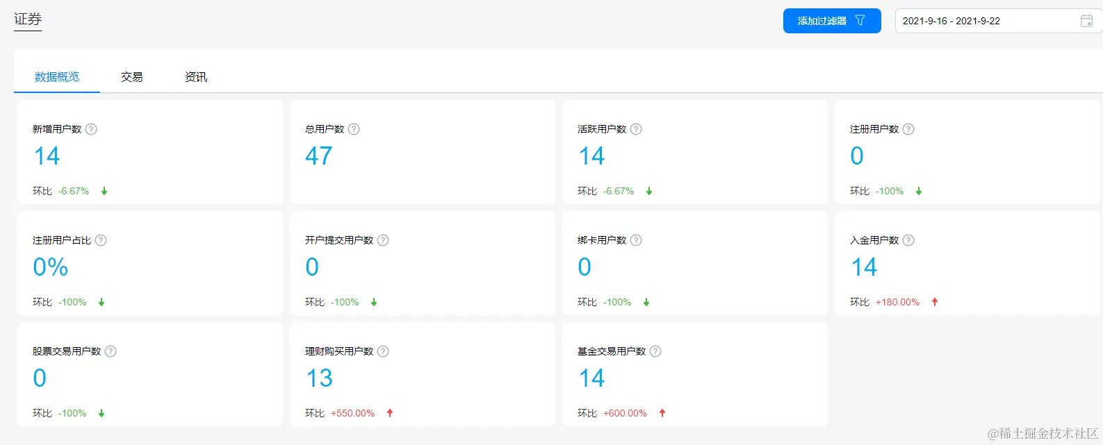 证券行业分析报告:通过数据概览、交易、资讯三大模板内容,直观呈现当前产品整体运营概况。关注用户理财体验和资讯偏好,以提升产品体验为核心,帮助企业挖掘更多差异化营销场景。