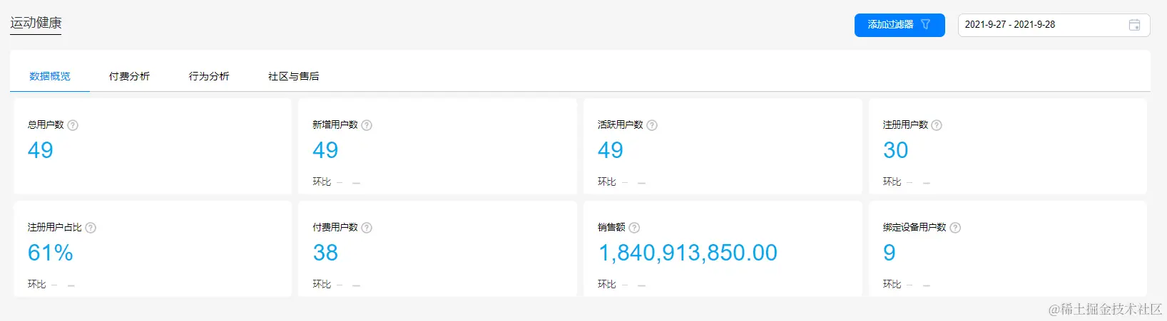 运动健康行业报告:由数据概览、付费分析、行为分析、社区与售后四大模板组成。通过科学深入的数据探索,了解用户的运动习惯与需求,加强用户对产品的信任和付费意愿,帮助企业强化独有性,建立竞争壁垒。