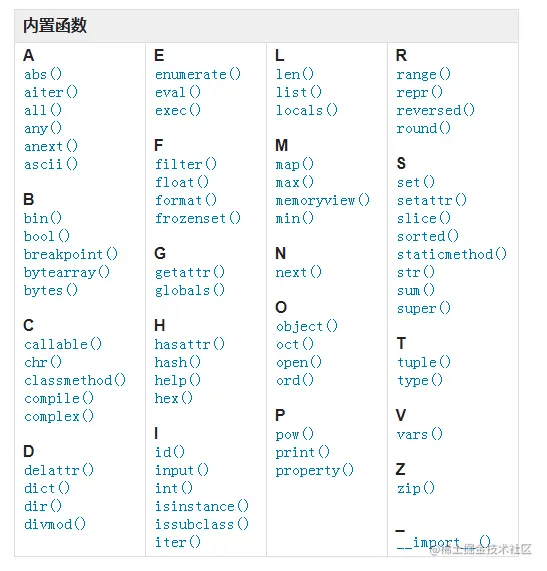 Python 解释器内置了很多函数和类型,任何时候都能使用。以下按字母顺序给出列表。