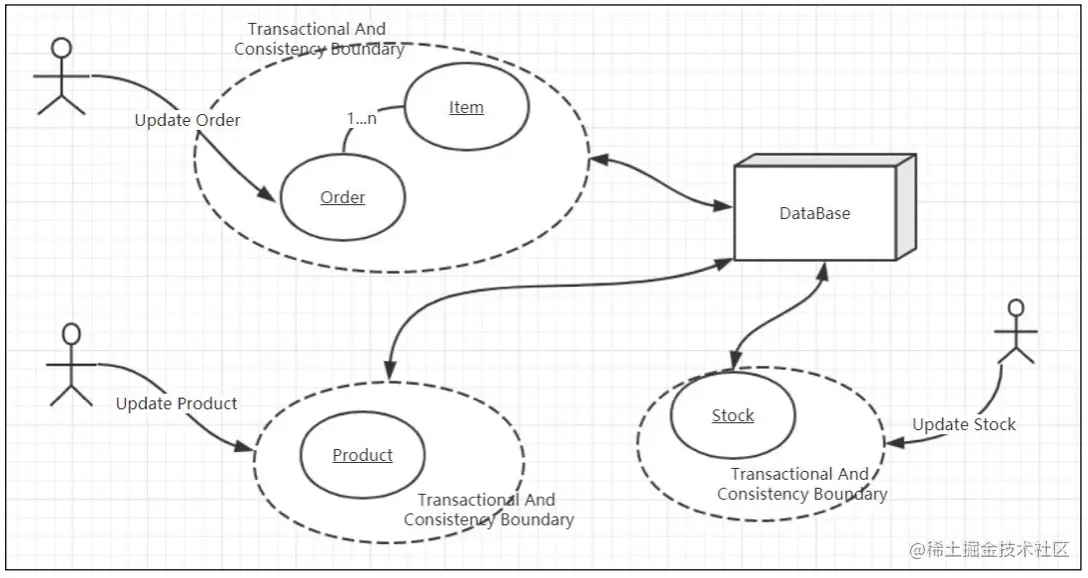 将实体和值对象在一致性边界之内组成聚合,使用聚合划分限界上下文(微服务)内部的边界,聚合根做为一种特殊的实体,用于管理聚合内部的实体与值对象,并将自身暴露给外部进行引用。