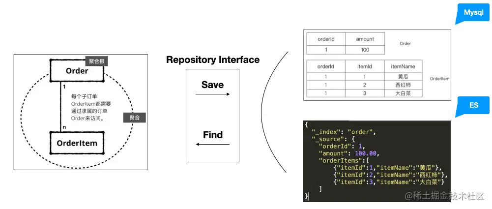 - Find: 根据存储所支持的数据结构,由Repository的实现转换为聚合对象