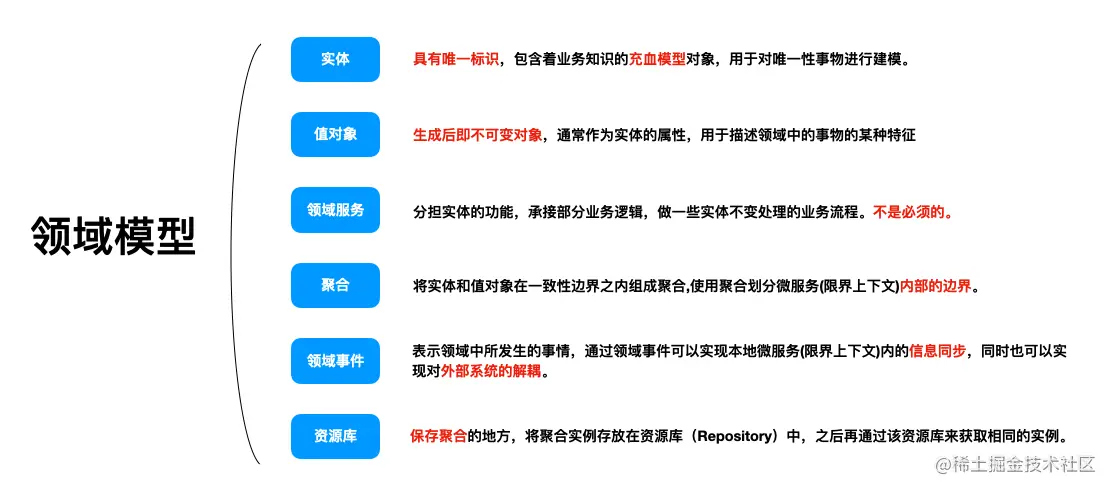 - 研发人员通过领域模型,领域模型就是DDD中用于指定微服务实现的模型,保存领域知识,通过这种方式DDD通过领域模型围绕业务进⾏建模,并将模型与代码进⾏映射,业务调整影响代码的同时,代码也能直接的反映业务。