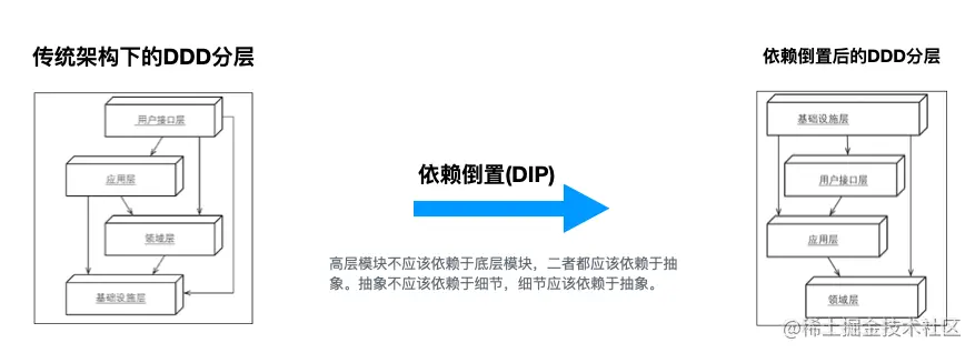 比如,在DIP之前,领域层之间依赖于基础设施层。